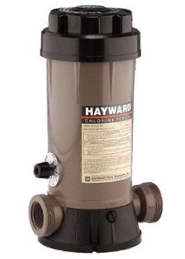 Description: A Hayward device installed directly in the return line that slowly dissolves chlorine tablets and feeds measured sanitizer into the pool water as it circulates.